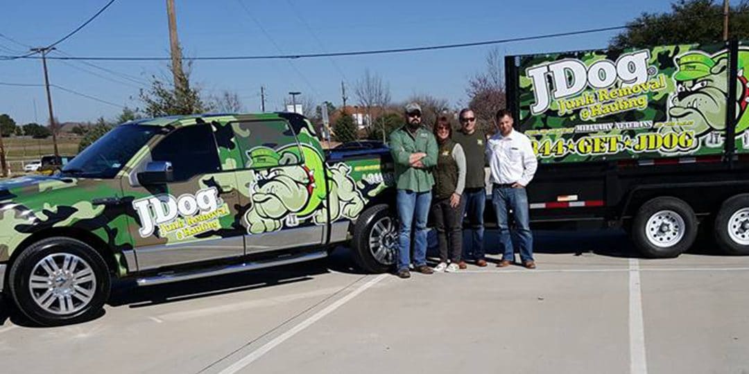 We’re JDog Junk Removal and Hauling, the trusted team of Veterans, Veteran and Military family members who are eager to haul away your junk in Roanoke/Flower Mound, Texas. In addition to serving you with the Military’s values of Respect, Integrity, and Trust, we also take care of the environment by donating and recycling 60% to 80% of what we haul. Whether you are clearing an estate, renovating an office building, or tackling a home improvement project, we are the right team to tackle your jobs both big and small. If you need a trustworthy, locally run company to handle your junk, JDog Junk Removal & Hauling is just the one you’re looking for. Call us today at 844-GET-JDOG.